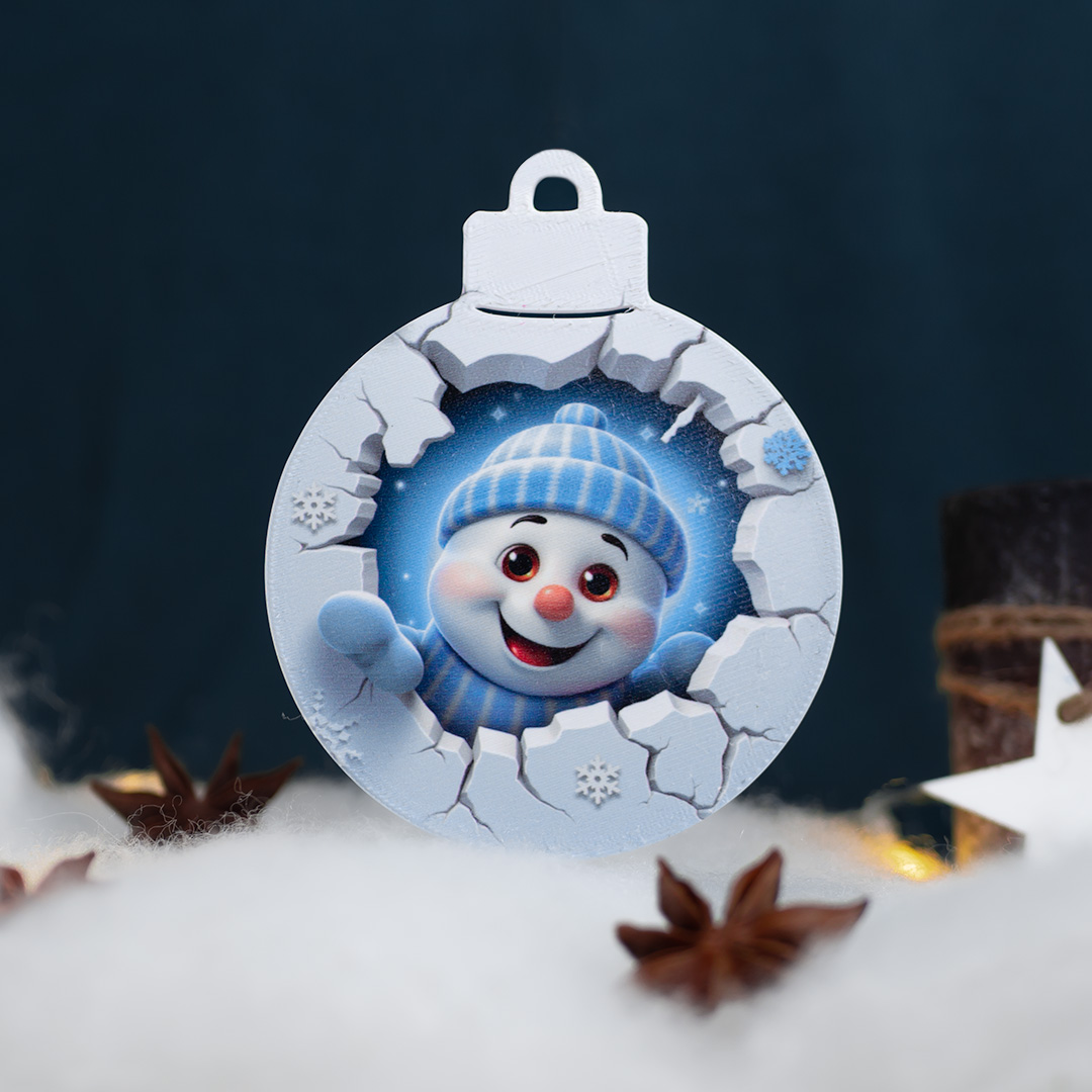 Vianočná ozdoba s obrázkovou potlačou roztomilého snehuliaka.
