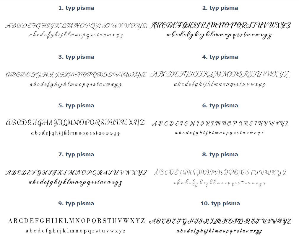 2. V druhom variante si vyberte typ písma. Vzor, ako vyzerajú jednotlivé písma nájdete v priložených obrázkoch, alebo tiež nižšie v popise produktu.